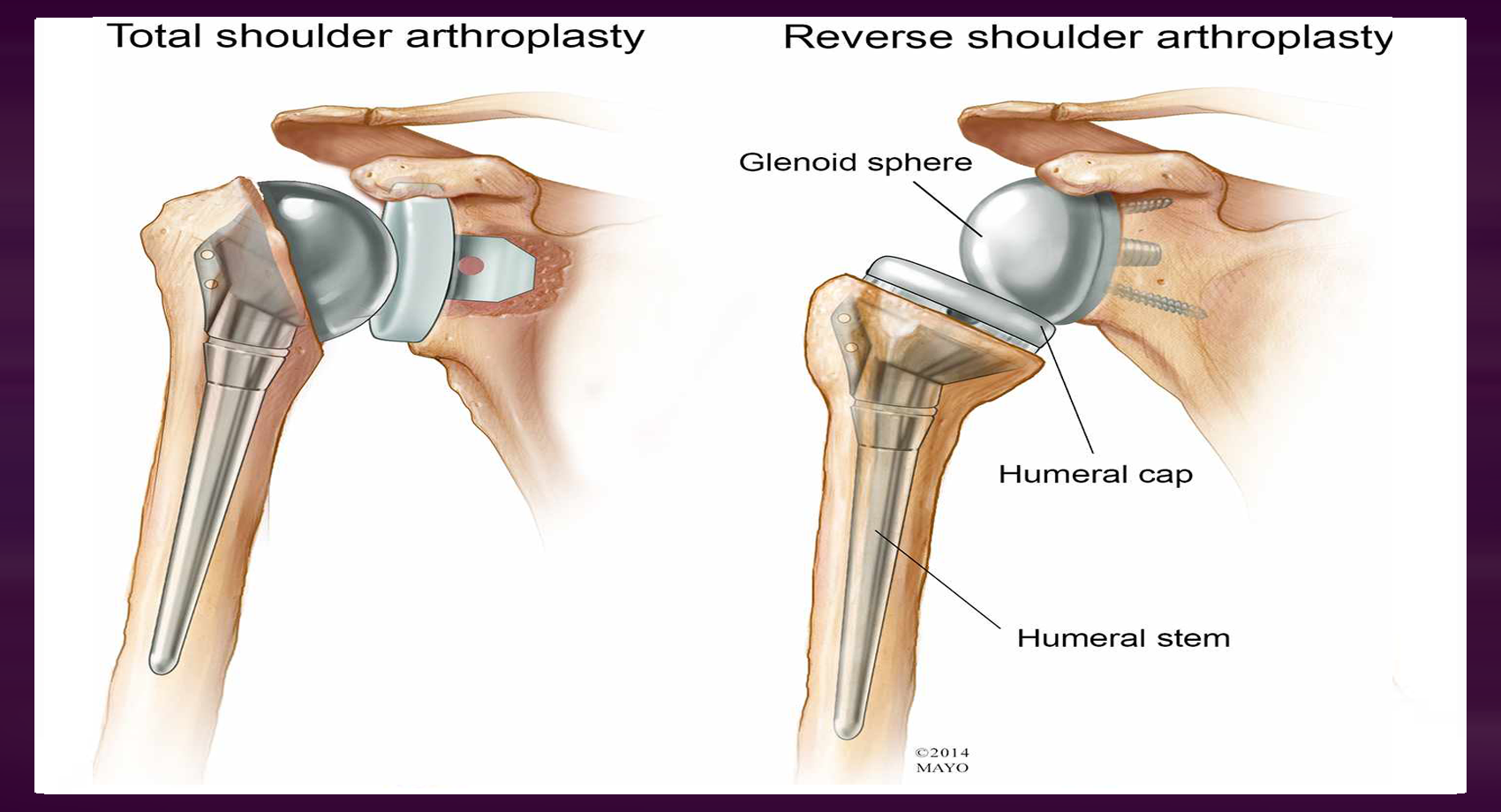 A metal ball is substituted the humeral head and replace the cartilage on the glenoid cavity a with the plastic socket.Once complete this surgery, It seems and works like the original joint.
